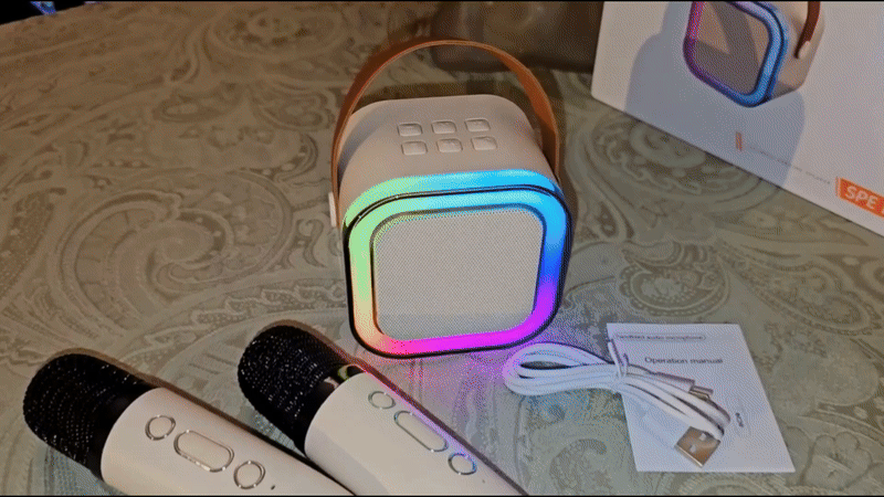 Karaoke artık sadece sahnede değil, evinizde, bahçenizde, hatta tatilde bile! Renk değiştiren LED ışıkları ve güçlü ses performansıyla bu Bluetooth hoparlör, her ortamı anında parti havasına sokar. Kablosuz bağlantı sayesinde telefon, tablet veya bilgisayar fark etmeden kolayca bağlanır, birkaç saniye içinde müzikle dolu bir atmosfer oluşturur.